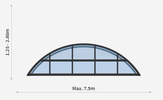 A Classic közép-magas medencefedés a maga egyszerű, köríves, klasszikus kialakításával harmonikus és esztétikus kiegészítője a kertnek. A magassága kellő lehetőséget biztosít a medencetér kihasználtságának és kényelmet ad ahhoz, hogy a kinti fürdési szezont meghosszabbíthassa a család az évben. Kifejezetten ajánljuk azoknak, akiknek nagy kertje van, sok zölddel és ahol a medencetérből kellemes kilátás nyílik akár a kertre, akár a közeli természetre, akár egy városi panorámára a polikarbonát medencefedésen keresztül.