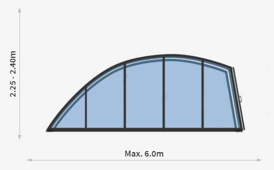 A Delta magas medencefedés szintén aszimmetrikus formát kapott, melyet az íves lágy vonalak mellett a sarkított, szögletes szélek törnek meg. Harmóniáját épp e kettősség adja. Az aszimmetrikus medence fedés kialakítás lehetővé teszi a medence szélén való közlekedést a zárt térben is, így ideális és otthonos belső teret nyújt a családi fürdőzések számára az év nagy részében.