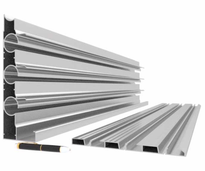 Az egyedi fejlesztésű és célirányosan a medencefedésekhez tervezett alumínium medencefedés profilok zárt szerkezetűek a maximális stabilitás érdekében. A dizájn és funkcionalitás tekintetében kényes pontokon kerekített formatervezésűek.