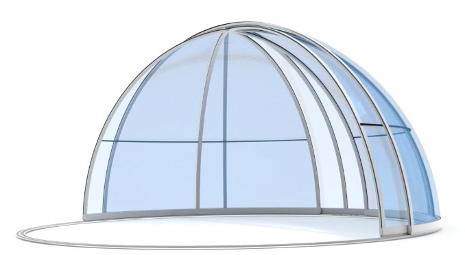 A SPA medencefedés kisebb kör alakú medencék vagy jakuzzik fedésére alkalmas. Kör alapú, kupolaszerű formája kedves külsőt nyújt, a kert számára pedig egy izgalmas hangulatú kiegészítést. A nyitáshoz elemei 180 fokban forognak körbe.